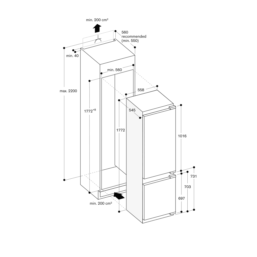 Збільшене внутрішній простір з корисним об'ємом в 245л, завдяки спеціальному розташуванню компресора.