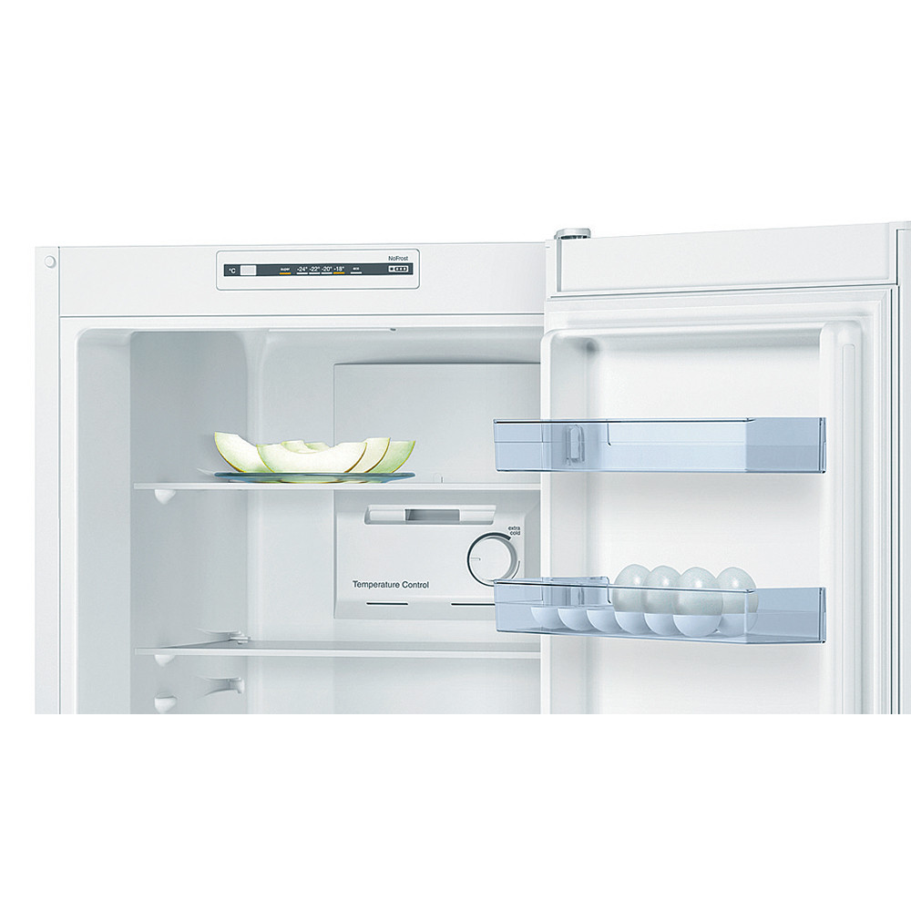 Холодильник NoFrost Serie | 2 с нижней морозильной камерой. Ящик MultiBox: изобилие пространства для различных пищевых продуктов. Бокс морозильного отделения EasyAccess: быстрый и удобный доступ к замороженным продуктам без необходимости доставать ящик. Современное светодиодное освещение LED. Функция быстрого замораживания SuperFreezing.