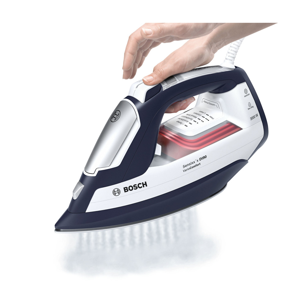 Парова система Бош Sensixx'x DI90 VarioComfort: простий, легкий і потужний спосіб досягти від мінних і глибокому проникненню пари. VarioComfort: прасувальні програми для ідеальних результатів.Програми прості та інтуїтивно зрозумілі. MotorSteam: пара проникає глибше в тканину завдяки вбудованому двигуну.Паровий удар 200 гр.