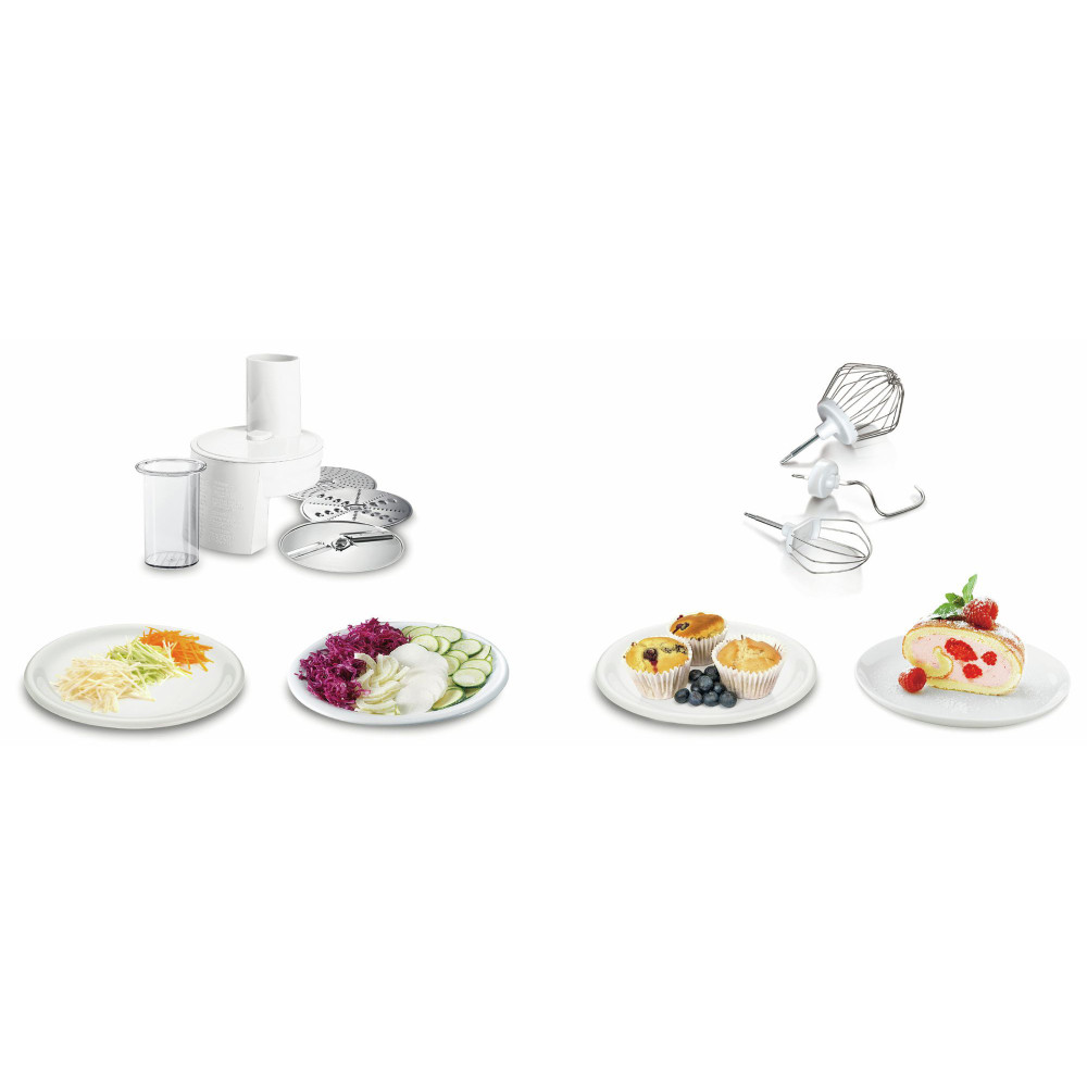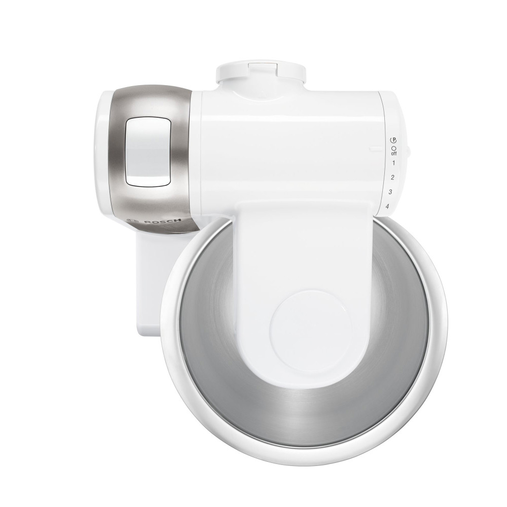 Удобная и универсальная кухонная машина БОШ с большой чашей для замешивания из нержавеющей стали объемом 3,9 л (вместимость до 2 кг теста). Многофункциональность благодаря аксессуарам для теста и Универсальный измельчитель с тремя дисками для измельчения и нарезки. Планемаєарная система вращения насадок MultiMotion Drive. Возможность к оснащению широким набором аксессуаров