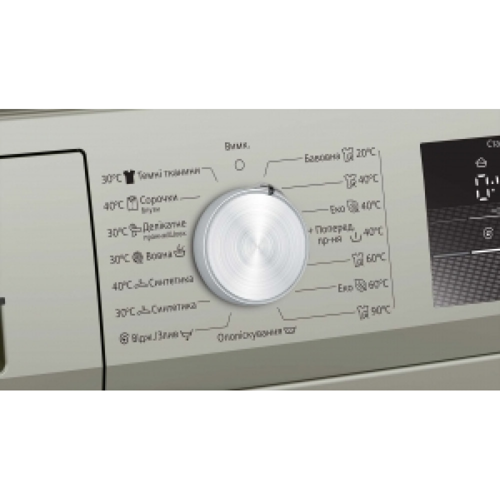 Великий світлодіодний дисплей для індикації ходу програми, обраних додаткових опцій, рівня температури, кількості обертів від жимання, залишкового часу прання, від термінування старту прання на 1 - 24 год та рекомендацій щодо завантаження