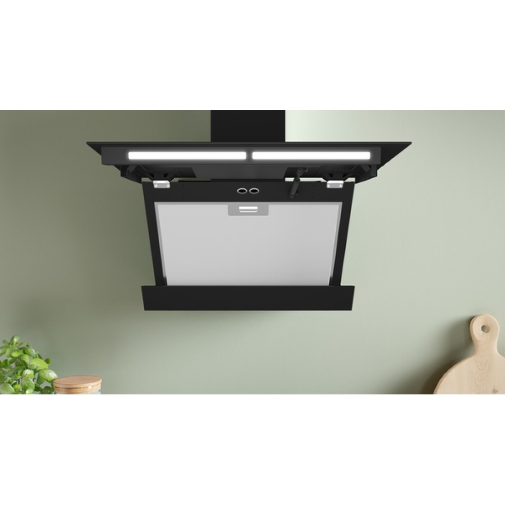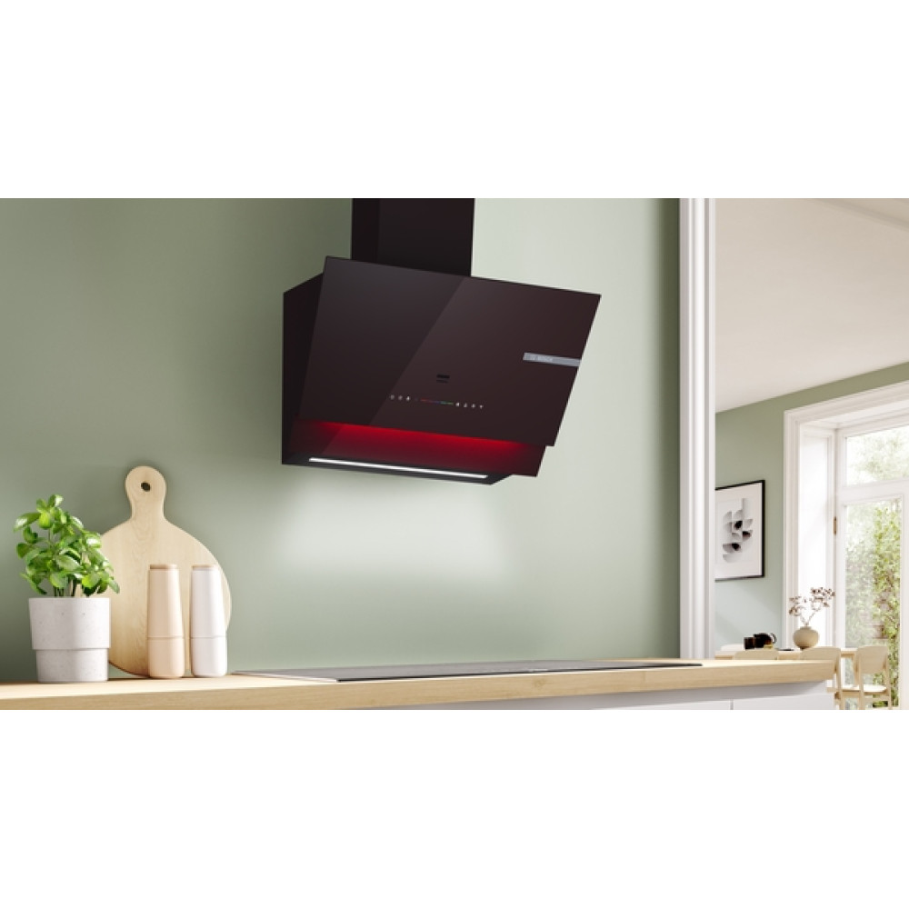Серия 8, Настенная вытяжка, 60 cm, Прозрачное стекло с черным принтом, Черный